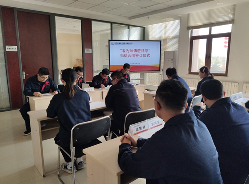 儀式上,6對(duì)師徒簽訂“師帶徒”協(xié)議書,徒弟向師傅敬“拜師茶”,師傅向徒弟回贈(zèng)鋼筆,鼓勵(lì)新入職員工要秉承“甘于奉獻(xiàn) 追求卓越”的企業(yè)精神,堅(jiān)定信念,積極學(xué)習(xí),快速適應(yīng)崗位職責(zé)。