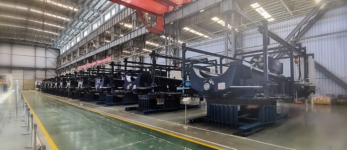 在大規(guī)模生產(chǎn)工作中,有效拓寬生產(chǎn)空間、采用精細(xì)化車(chē)間定置管理將極大提升生產(chǎn)效率。生產(chǎn)團(tuán)隊(duì)根據(jù)物資到貨情況及生產(chǎn)進(jìn)程,合理規(guī)劃空間布局,提高空間利用率的同時(shí)兼顧后續(xù)工序便利性。充分利用外場(chǎng)地及庫(kù)房空間,巧思布置,使得大批量存放半成品機(jī)組得以實(shí)現(xiàn)。整齊劃一的機(jī)組,形成了華銳風(fēng)電一道最美的風(fēng)景線。