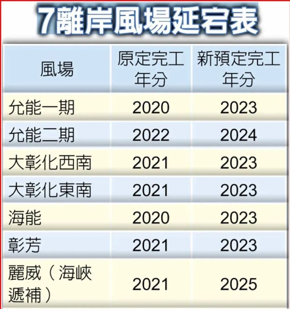 目前Formosa 2、大彰化、云林風(fēng)電場(chǎng)均在申請(qǐng)延期。提交延期材料的截至日期為1月底,延期時(shí)間是否合理,需根據(jù)提交的材料而定。若延期理由不適用,還將面臨階段式處罰。