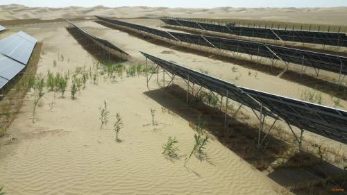 荒漠化一直是國家西部發(fā)展最大阻礙,西部治沙一直是國家的百年大計,近年來,國家投注了大量精力和資金治沙,一直在不斷的探索治沙新模式。光伏治沙是二十一世紀(jì)第二個十年最新探索出的成果。中國電建集團(tuán)山東電建一公司德益公司積極擔(dān)當(dāng)作為,開展沙漠防沙固沙生態(tài)治理,在廠區(qū)迎風(fēng)面及光伏方陣,種植140萬平草方格,即用麥草、葦桿等材料在沙漠中扎成1米乘1米的正方形方格形狀,當(dāng)氣流或風(fēng)沙流經(jīng)沙障時,產(chǎn)生渦旋并伴有積沙現(xiàn)象,經(jīng)過充分蝕積,形成較為光滑凹曲面,削弱風(fēng)沙的侵蝕,有效實(shí)現(xiàn)板上發(fā)電,板下治沙改土,減緩沙丘流動,減少水分蒸發(fā),為固沙植物存活創(chuàng)造良好條件。