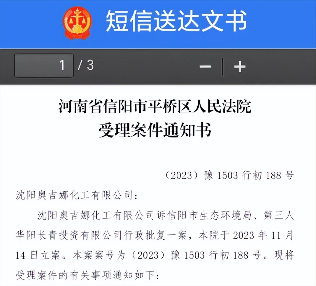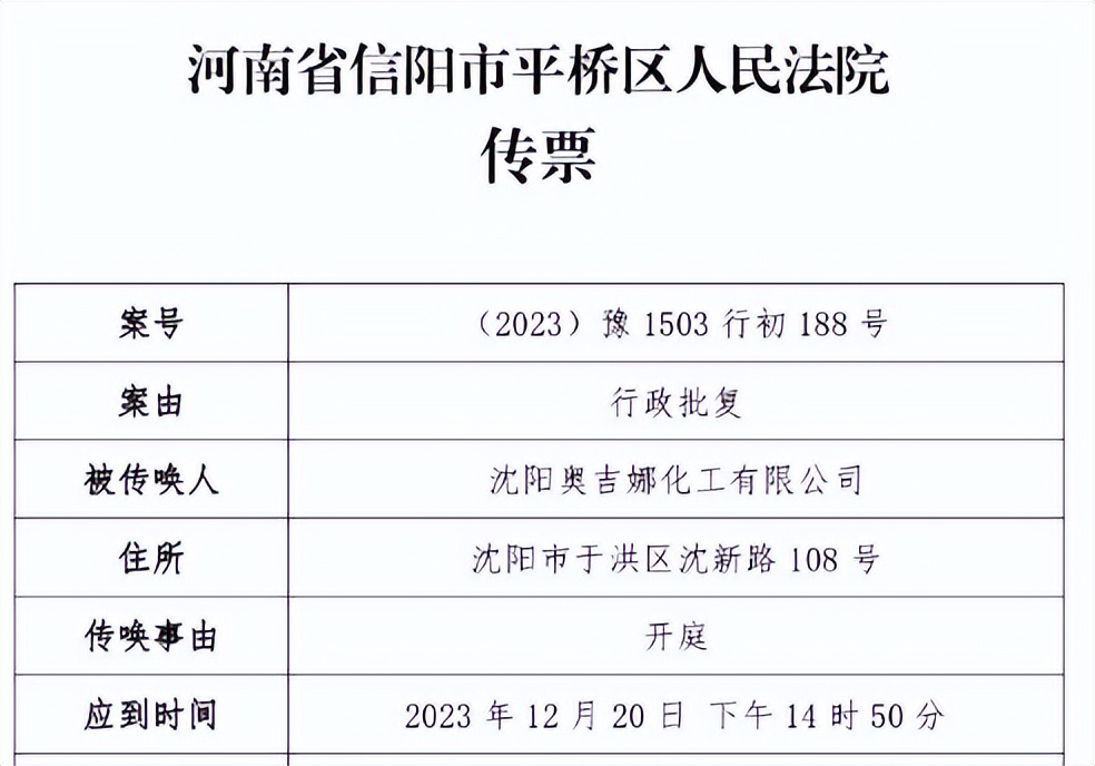 2023年12月1日,中國風(fēng)電潤滑油龍頭企業(yè)沈陽奧吉娜化工有限公司(下簡稱奧吉娜公司)收到河南省信陽市平橋區(qū)人民法院開庭傳票,奧吉娜公司訴信陽市生態(tài)環(huán)境局和第三人華陽長青投資有限公司行政訴訟案,將于2023年12月20日14時50分開庭審理。屆時,這起風(fēng)電潤滑油央企招投標“民告官”第一案結(jié)果如何,讓我們拭目以待。