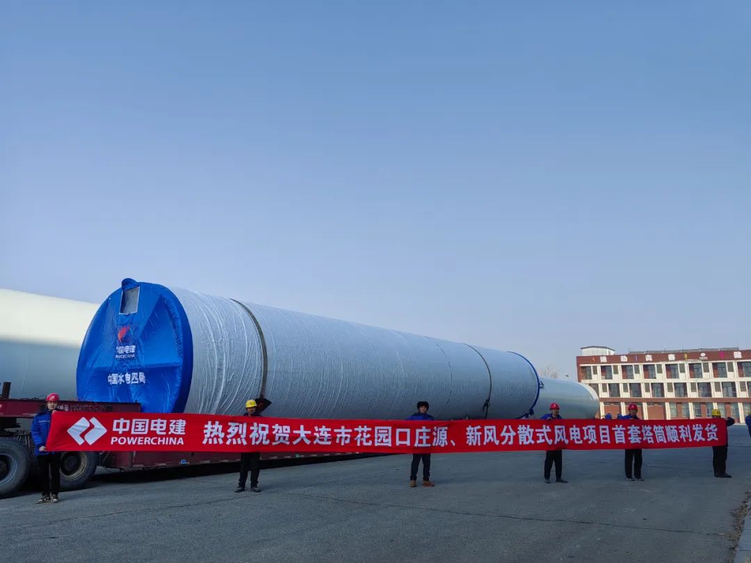 3月14日,由中國水電四局大連公司承制的大連市花園口莊源、新風分散式風電項目首套塔筒順利發(fā)貨。