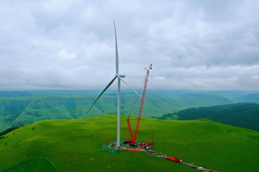 8月6日,中國能建山西電建承建的全國首臺最大單機陸上風(fēng)電機組——赤峰克旗興龍20萬千瓦風(fēng)電項目首臺風(fēng)機吊裝完成。
