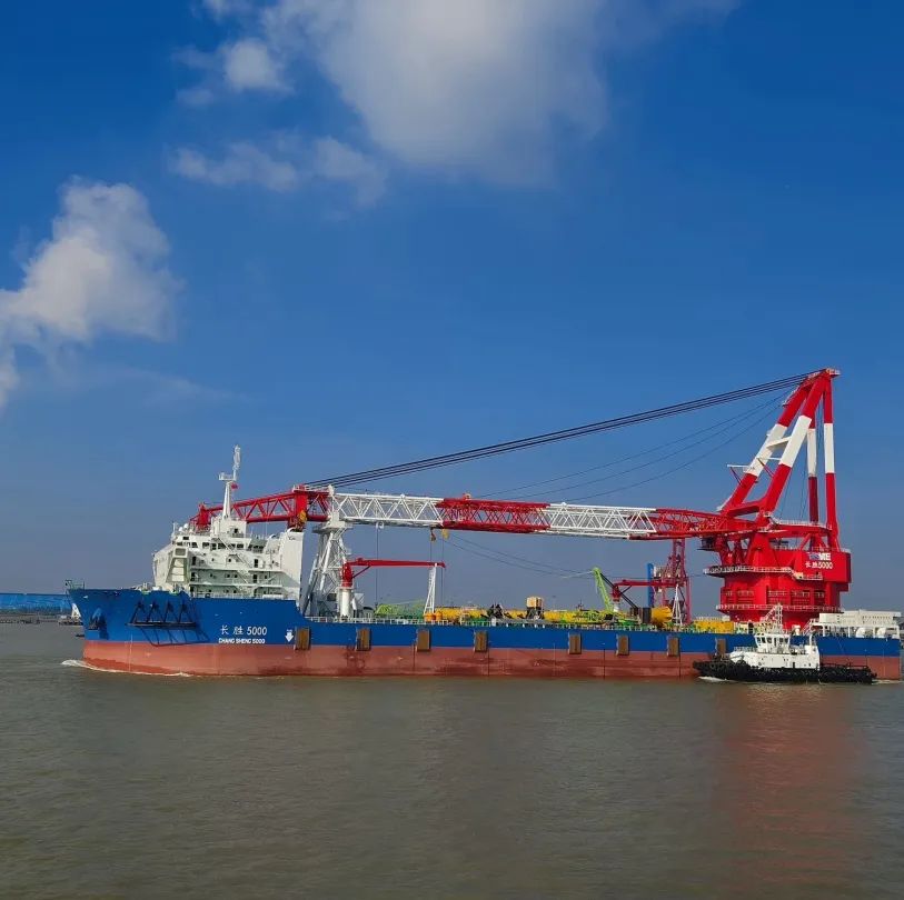 “長勝5000”輪,全長182米,型寬49米,型深15米,最大作業(yè)吃水11米,設(shè)計吃水8米,甲板載荷12T/平方米,起重機固定尾吊狀態(tài)下4000TX40M;全回轉(zhuǎn)狀態(tài)下3000TX40M;主要用于海上風(fēng)電管樁吊裝作業(yè)及大型構(gòu)件起重作業(yè),由南通振華重型裝備制造。該輪出江后,將直接拖往廣東惠州,致力于海上風(fēng)電項目建設(shè)。