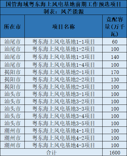 國管海域項目配置范圍。先安排15個、共1600萬千瓦的預選項目,其中汕頭市5個、500萬千瓦,汕尾市4個、400萬千瓦,揭陽市3個、400萬千瓦,潮州市3個、300萬千瓦;再從中遴選出800萬千瓦的項目作為開展前期工作的示范項目。