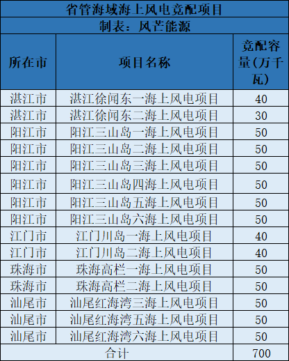 近日,廣東省發(fā)布《廣東省2023年海上風電項目競爭配置工作方案》指出,省管海域項目配置范圍。共15個項目、裝機容量700萬千瓦,包括湛江市2個、70萬千瓦,陽江市6個、300萬千瓦,江門市2個、80萬千瓦,珠海市2個、100萬千瓦,汕尾市3個、150萬千瓦。