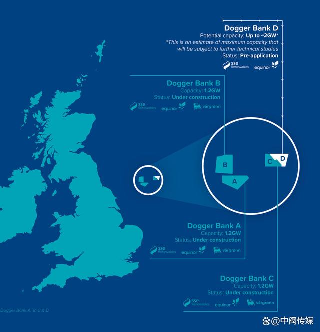 Dogger Bank,全球最大的在建海上風(fēng)電場,正在進(jìn)行令人矚目的第四期場址建設(shè)擴(kuò)張,名為Dogger Bank D。此項擴(kuò)建計劃意味著將安裝更多的風(fēng)機(jī)和海上平臺,總?cè)萘繉⑦_(dá)到5.6GW,這將進(jìn)一步推動全球可再生能源的發(fā)展,同時也為歐洲各國提供了新的電力供應(yīng)解決方案。