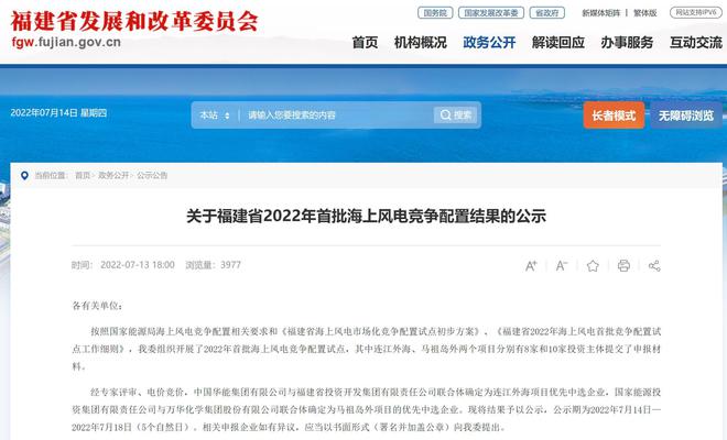昨日(7月13日),福建省發(fā)改委發(fā)布《關(guān)于福建省2022年首批海上風(fēng)電競爭配置結(jié)果的公示》,有消息稱此次福建省海上風(fēng)電項目中標(biāo)的上網(wǎng)電價低至0.2元/度左右。