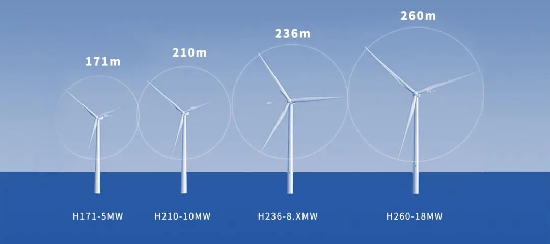作為我國(guó)大型海上風(fēng)電裝備研發(fā)制造領(lǐng)域的破局者、世界紀(jì)錄的創(chuàng)造者、海上風(fēng)電事業(yè)的引領(lǐng)者,自2008年起深耕海上風(fēng)電,中國(guó)海裝開創(chuàng)并引領(lǐng)了國(guó)內(nèi)風(fēng)電行業(yè)大功率、長(zhǎng)葉片風(fēng)電機(jī)組的大型化發(fā)展方向,牢牢掌握了機(jī)組大型化的核心控制技術(shù),開創(chuàng)了國(guó)內(nèi)大兆瓦海上風(fēng)電機(jī)組平價(jià)批量應(yīng)用的先河。秉承著“研制一代、預(yù)研一代、探索一代”的理念,中國(guó)海裝始終按照階梯前進(jìn)的方式,持續(xù)穩(wěn)步在提升風(fēng)輪直徑和額定功率尋求新的突破。
