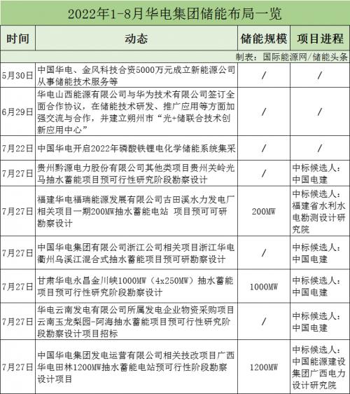 2022年,華電集團(tuán)成立新能源公司從事儲能技術(shù)服務(wù)等業(yè)務(wù),并開啟磷酸鐵鋰電化學(xué)儲能系統(tǒng)集采。儲能項(xiàng)目招標(biāo)6個(gè),均為抽水蓄能項(xiàng)目。