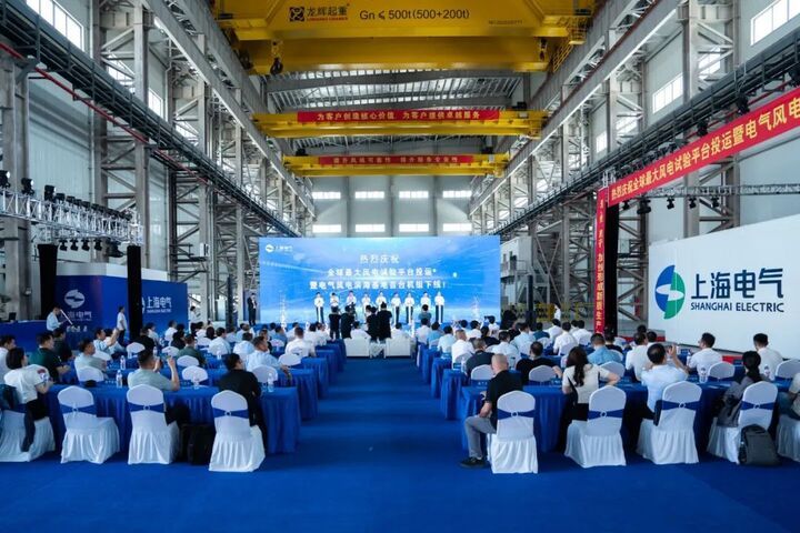 日前,全球最大風電試驗平臺——上海電氣風電全功率平臺在上海電氣風電濱海基地投運。當天,上海電氣風電濱?;厥着_機組同時下線。