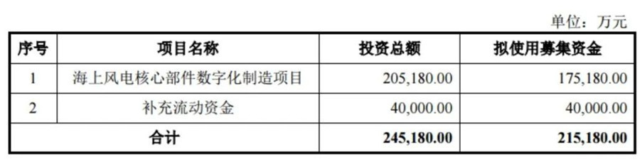 12月12日,金雷科技股份公司(簡稱“金雷股份”)發(fā)布《向特定對(duì)象發(fā)行股票募集說明書》(修訂稿),擬募集資金21.52億元,用于海上風(fēng)電核心部件數(shù)字化制造項(xiàng)目(17.52億元)和補(bǔ)充流動(dòng)資金(4億元)。