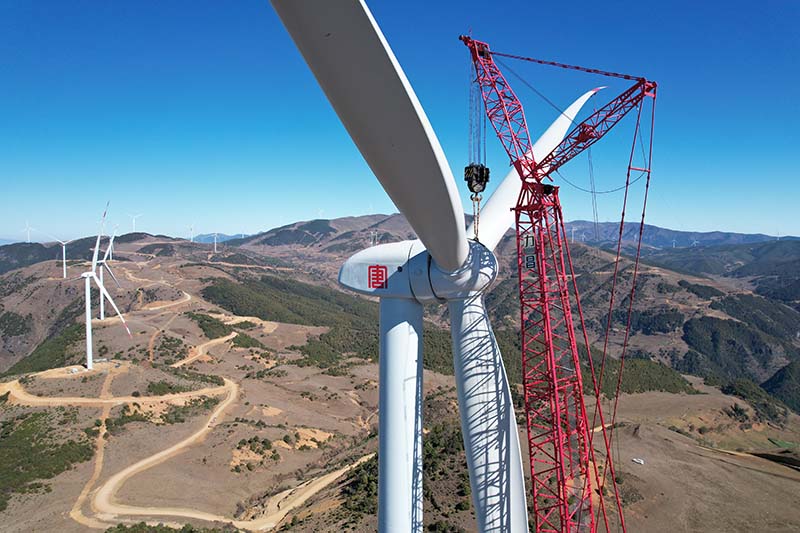 20日,在最后一臺風機--8號風機吊裝現(xiàn)場,中國安能建設者們正在準備發(fā)電機吊裝作業(yè)。“大家注意,起吊!”隨著吊車的啟動,葉輪慢慢向約95米的高空爬升。“今天基本沒有風,天氣晴朗,葉輪吊裝順利。”正在現(xiàn)場指揮的中國安能第二工程局普格采乃風電場項目經(jīng)理魯大偉介紹道,普格采乃風電場項目的31臺風機終于完成了安裝,下一步將進入調試階段。