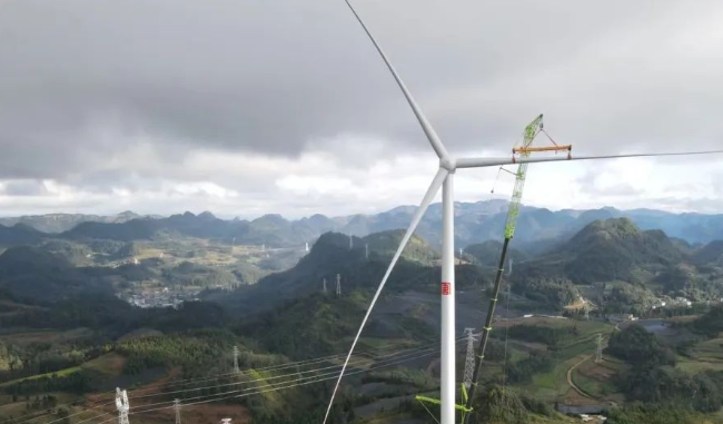 大唐文山州平壩風電場三期工程首臺風機吊裝成功
