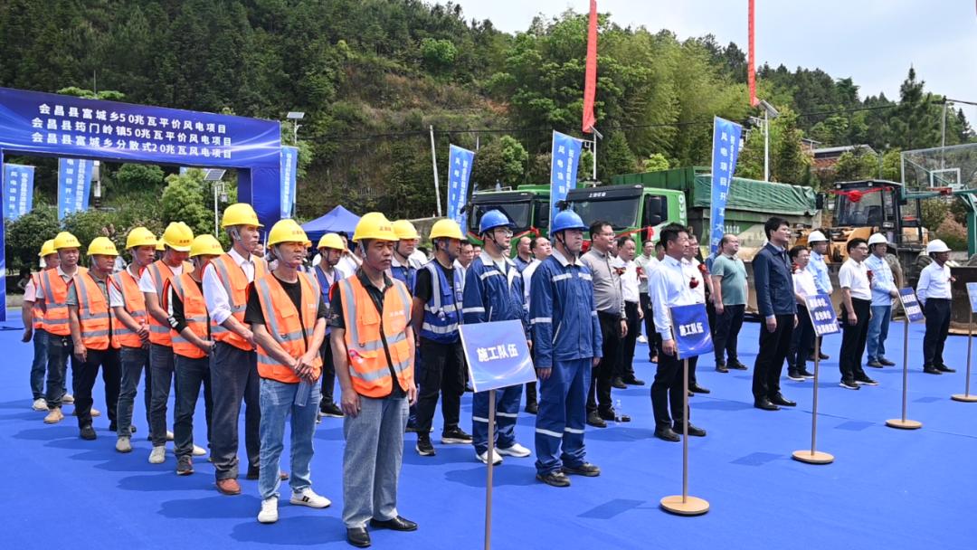 4月15日,會昌縣富城鄉(xiāng)50兆瓦平價風(fēng)電項目、會昌縣筠門嶺鎮(zhèn)50兆瓦平價風(fēng)電項目、會昌縣富城鄉(xiāng)20兆瓦分散式風(fēng)電項目開工儀式在富城鄉(xiāng)舉行??h領(lǐng)導(dǎo)殷俊出席儀式并宣布項目開工。項目總包代表、施工方代表、相關(guān)職能部門及鄉(xiāng)鎮(zhèn)負(fù)責(zé)人參加開工儀式。