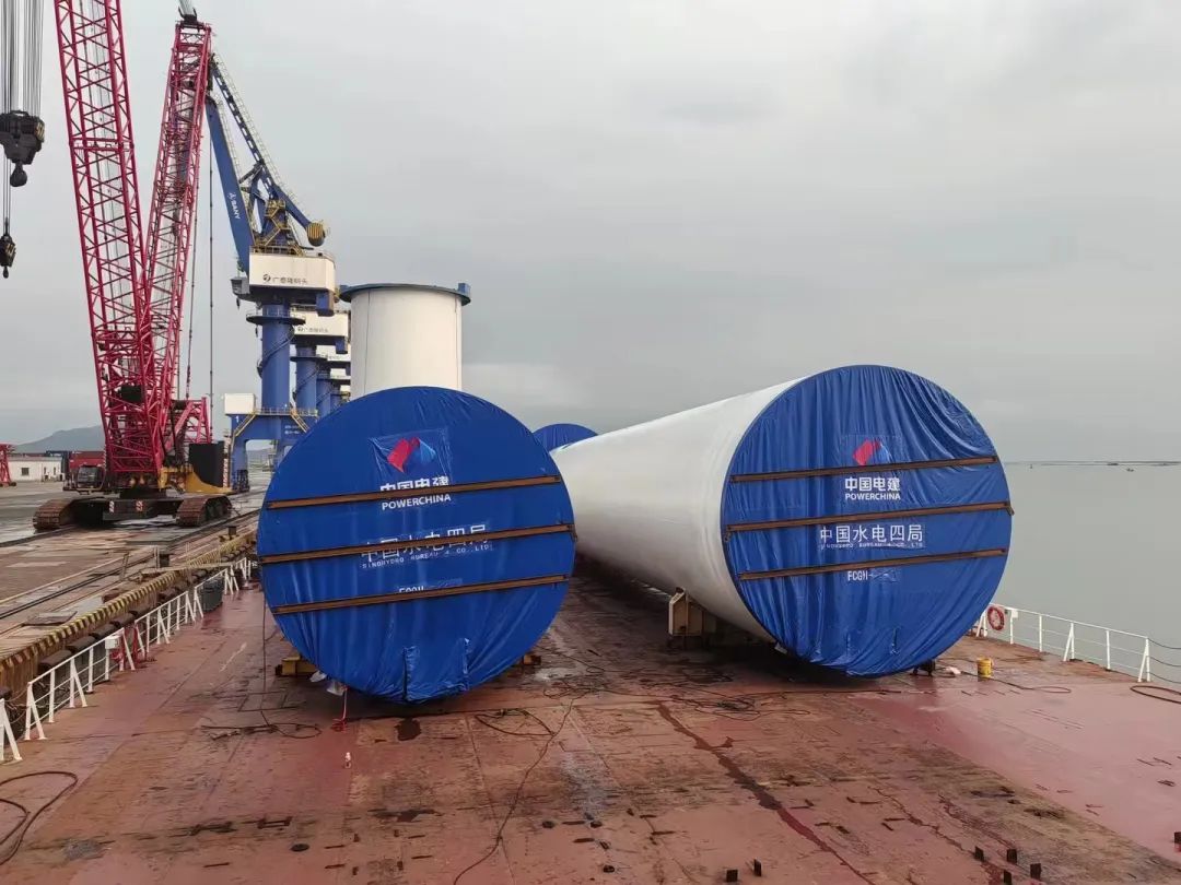 該項目裝機(jī)容量高達(dá)289MW,計劃安裝34臺8.5MW風(fēng)機(jī)。陽江公司承擔(dān)其中14臺塔筒的加工制造任務(wù),工期緊任務(wù)重。這些塔筒不僅體積龐大,僅單套重量(不含電氣柜)達(dá)到了約510噸,且結(jié)構(gòu)復(fù)雜,共4段,總長度111米,最大直徑7.5米,最小直徑5.3米。
