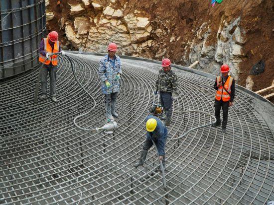 圖為工人們正在進(jìn)行大體積混凝土澆筑。巫山縣委宣傳部供圖