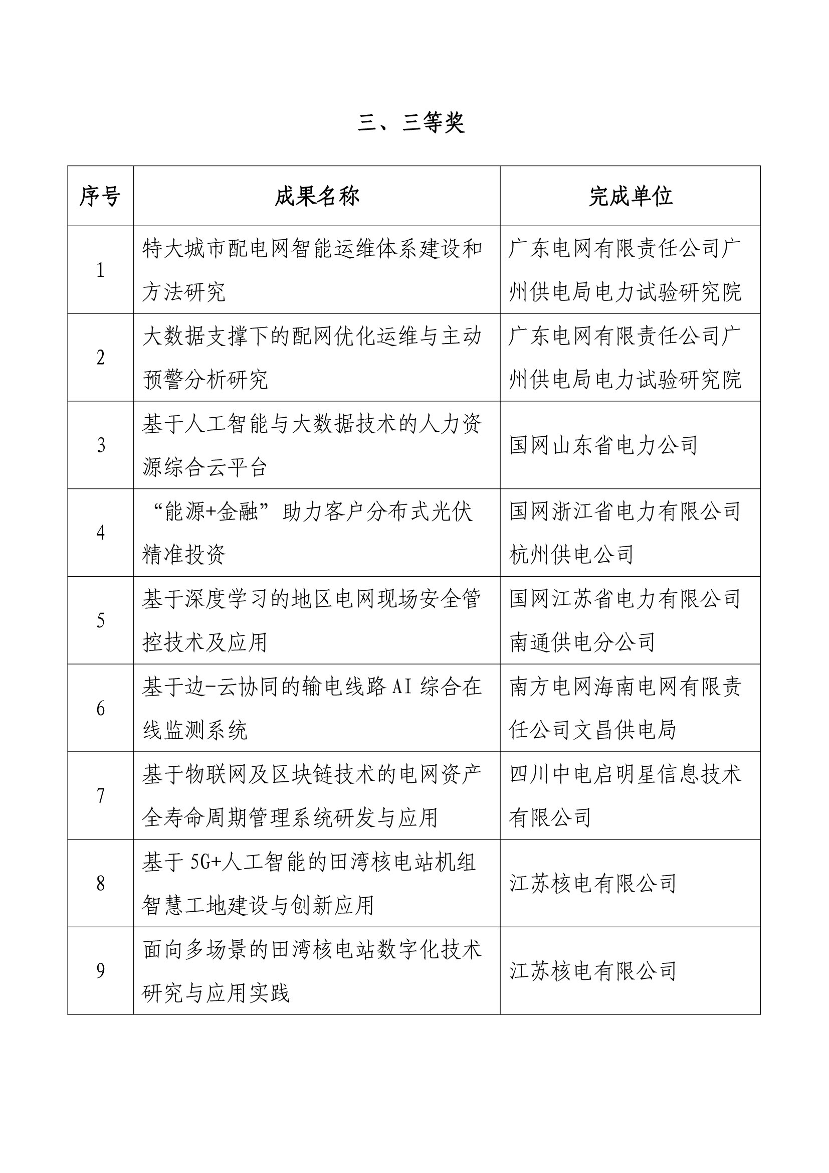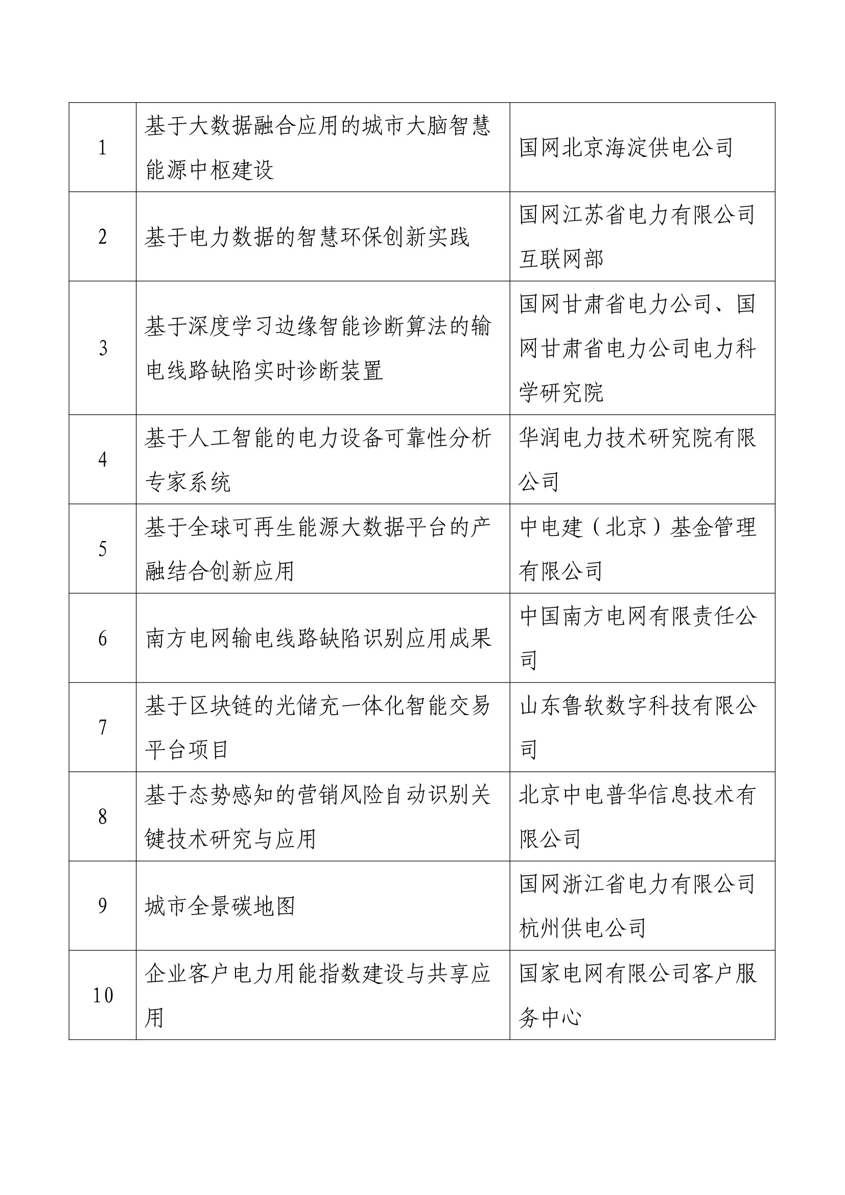 2021年度電力人工智能與大數(shù)據(jù)應(yīng)用創(chuàng)新獎推薦獲獎成果名單