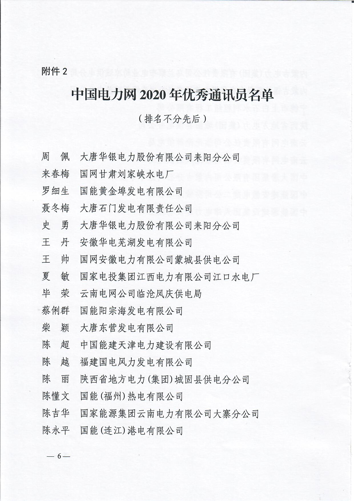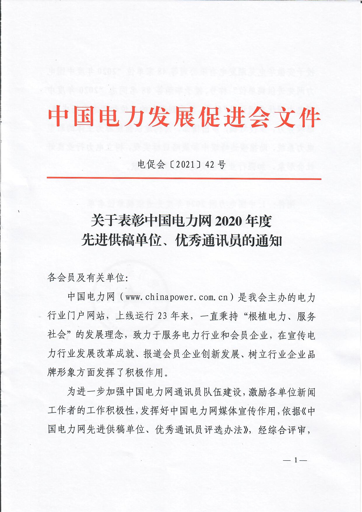 關(guān)于表彰中國(guó)電力網(wǎng)2020年度先進(jìn)供稿單位、優(yōu)秀通訊員的通知
