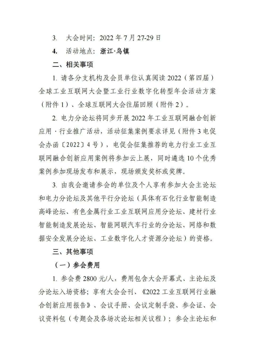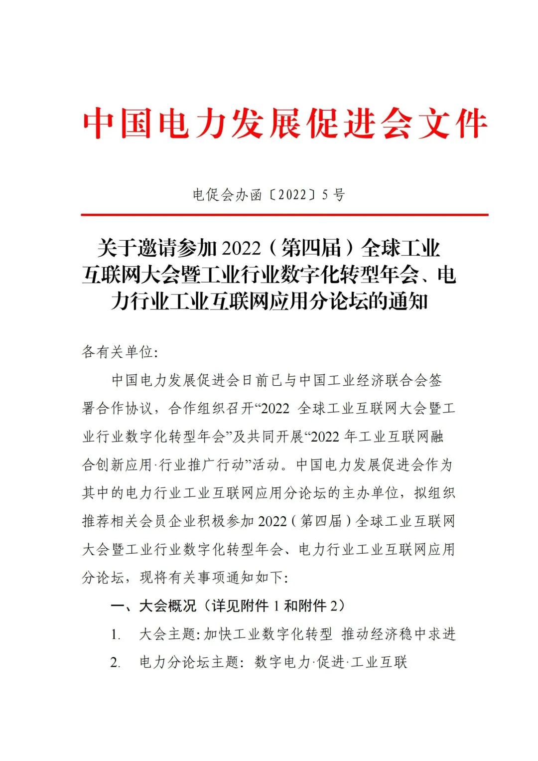 關于邀請參加 2022(第四屆)全球工業(yè) 互聯(lián)網(wǎng)大會暨工業(yè)行業(yè)數(shù)字化轉(zhuǎn)型年會、電力行業(yè)工業(yè)互聯(lián)網(wǎng)應用分論壇的通知