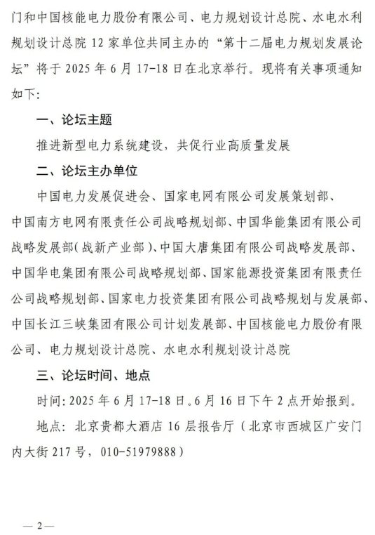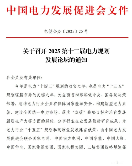 關(guān)于召開2025第十二屆電力規(guī)劃發(fā)展論壇的通知