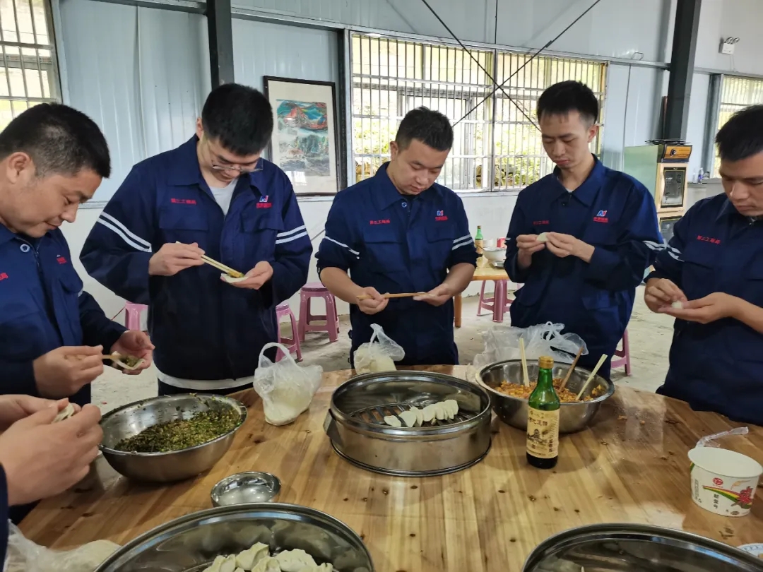 提到“端午節(jié)”,最不能缺少的一定是“粽子”。端午節(jié)這天,硬梁包項項目部、重慶公司工程四隊、龍溪河項目、那曲項目、桐城項目部等基層單位的食堂內,員工和來隊家屬“自己動手,豐衣足食”,來到食堂自發(fā)參與,自己親手包的粽子。有的負責剪粽葉,有的負責包,有的負責綁繩子,將準備好的粽葉、糯米、臘肉和豌豆等材料也一個個綁好放上蒸籠,大家邊包粽子邊拉著家常,現(xiàn)場其樂融融。許多員工都表示這是他們第一次在項目上包粽子,過佳節(jié),感受節(jié)日氛圍、弘揚傳統(tǒng)文化的同時,也增進了彼此間的感情交流,既體驗到家的溫暖,也增強了歸屬感。