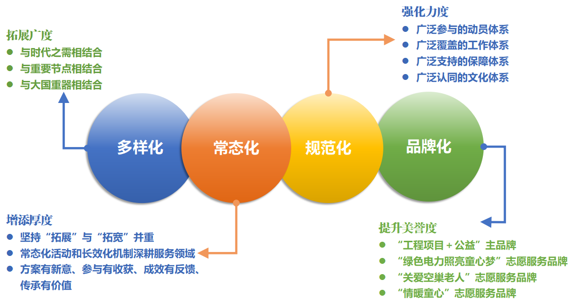 以品牌化提升美譽(yù)度。江蘇院志愿服務(wù)堅持以品牌化擴(kuò)大影響力,在實(shí)踐中提煉出“工程項(xiàng)目+公益”主品牌和三大子品牌的“1+3”品牌矩陣。聚焦重點(diǎn)工程,創(chuàng)建“綠色電力照亮童心夢”服務(wù)品牌;聚焦老年群體,打造“關(guān)愛空巢老人”服務(wù)品牌;聚焦少兒群體,沉淀出“情暖童心”服務(wù)品牌。