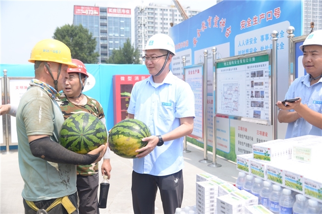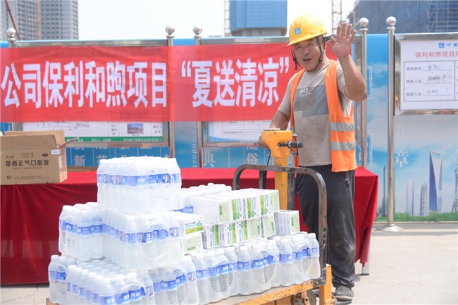 慰問中,領導班子成員親手將藿香正氣水等防暑降溫慰問品送到奮戰(zhàn)在一線的工人手上,黨支部書記、項目指揮長叢培建強調,我們要切實把工人的身體健康放在首位,不斷改善一線勞動者的工作條件,嚴格落實防暑降溫保障工作,確保奮戰(zhàn)在一線的勞動者安全度夏,保障生產工作有序開展,積極創(chuàng)造更好的勞動環(huán)境,切實維護好工人合法權益。