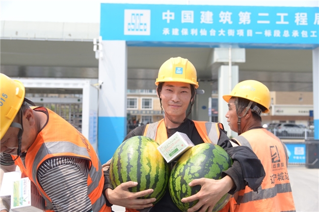 本網訊 秉持“我為群眾辦實事”的服務精神,中建二局北方公司吉林分公司長春保利和煦項目黨支部組織“送清涼、送清廉”活動。這次活動由長春保利和煦項目一標段項目黨支部書記、工會主席、項目指揮長叢培建、黨支部黨員、項目領導班子組成,此次活動為一線工人送去防暑物資,把關懷送到生產、建設一線。