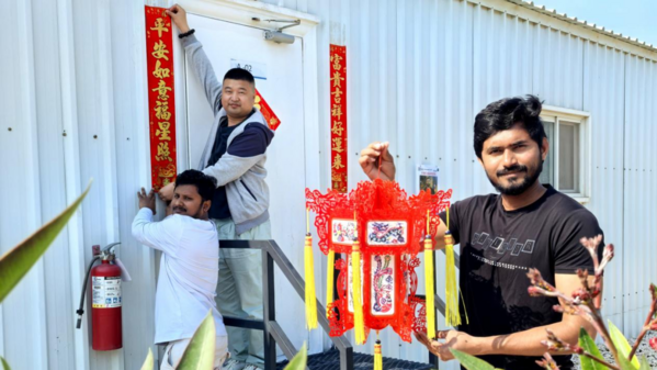 沙特國王港項目部精心策劃了一系列慶祝活動,讓中外員工共度歡樂祥和的中國年。團拜會上,項目部向全體員工送上新春祝福,感謝大家的辛勤付出,并鼓勵團隊在新的一年再接再厲,共創(chuàng)佳績。中外員工歡聚一堂,傾情演出,互致問候,現(xiàn)場氣氛熱烈喜慶。除夕夜,項目部組織了包餃子活動,大家紛紛動手參與,搟皮、包餡、捏褶,忙得不亦樂乎。許多外籍員工在中國同事的指導(dǎo)下,第一次體驗制作餃子的樂趣,感嘆這一傳統(tǒng)習(xí)俗的獨特魅力。年夜飯上,項目食堂特別準(zhǔn)備了豐盛的中式年菜,中外員工圍坐一堂,共享美食,暢談文化習(xí)俗。大家紛紛表示,將以更加飽滿的熱情投入工作,為項目高質(zhì)量履約貢獻(xiàn)力量,共同推動“一帶一路”建設(shè)邁上新臺階。