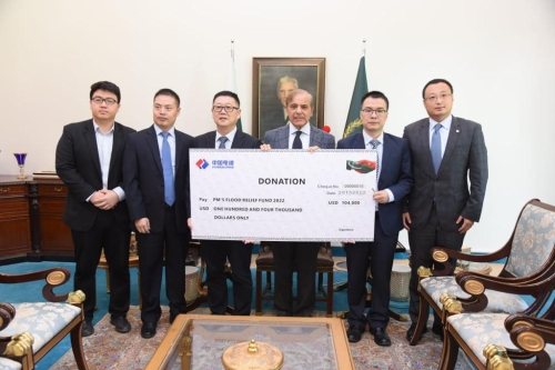 在洪水發(fā)生后,中國電建作為全巴中資企業(yè)會長單位,立即采取行動,號召全巴中資企業(yè)為救災(zāi)捐款捐物,28家中資企業(yè)相繼慷慨解囊,在8月26日完成了1550萬盧比(約合49萬人民幣)捐款。