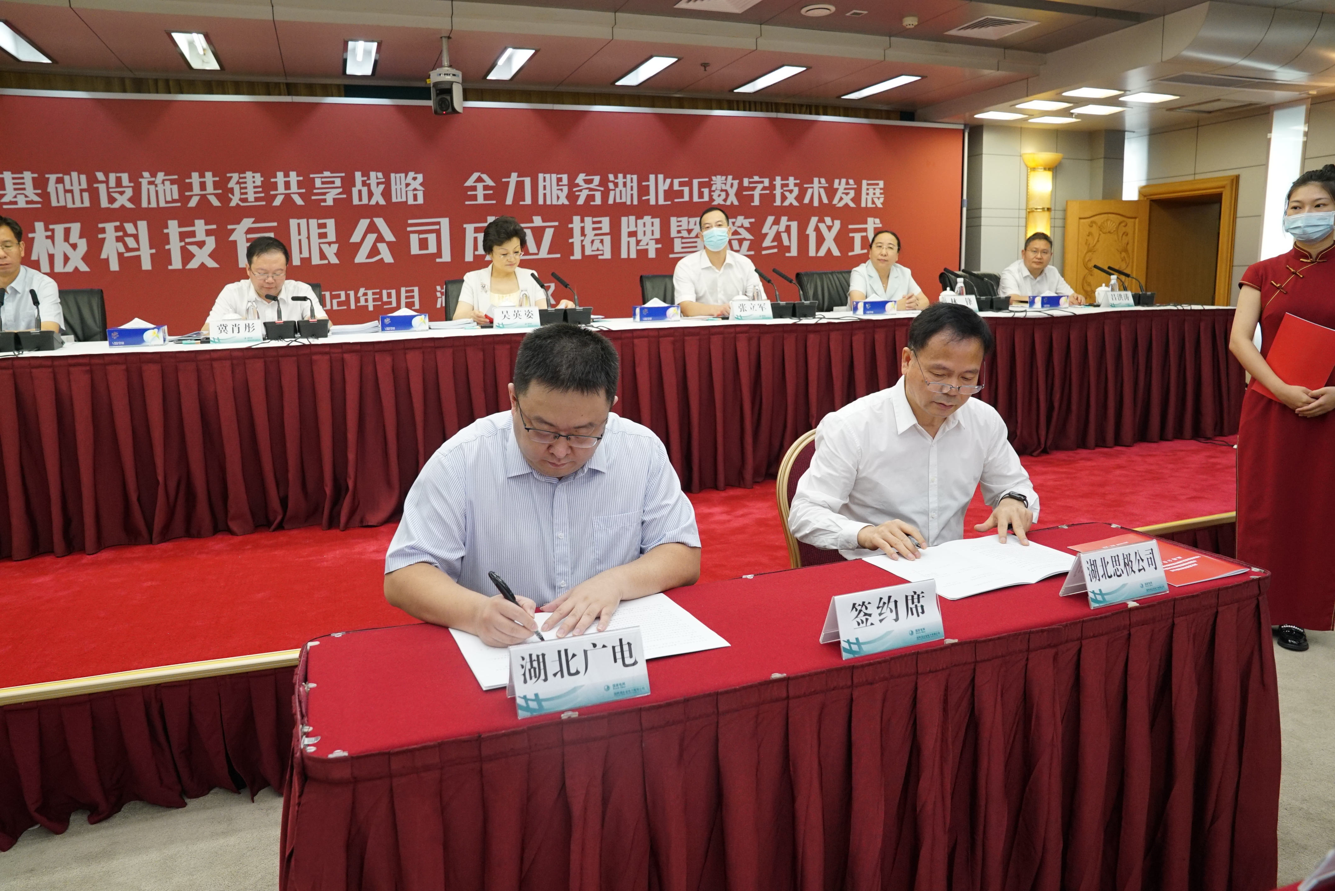 在揭牌儀式上,湖北思極科技分別與中國移動通信集團湖北有限公司、湖北省廣播電視信息網(wǎng)絡(luò)股份有限公司簽署合作協(xié)議,為實現(xiàn)社會資源集約共享邁出堅實一步。