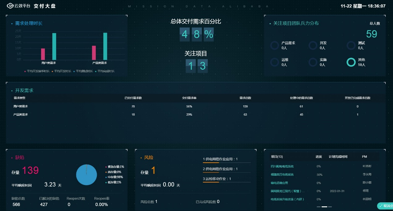 信產(chǎn)國電通公司積極推進(jìn)公司研發(fā)仿真環(huán)境項(xiàng)目納管,研發(fā)業(yè)務(wù)管理部門深入項(xiàng)目組調(diào)研研發(fā)環(huán)境應(yīng)用需求,推進(jìn)研發(fā)工作從線下轉(zhuǎn)到線上。2021年共推動(dòng)本單位承建的網(wǎng)上電網(wǎng)(PIS)、基建全過程、電子商務(wù)平臺(tái)(ECP)、數(shù)字化審計(jì)平臺(tái)、人資2.0、經(jīng)法2.0等27個(gè)在研項(xiàng)目轉(zhuǎn)到云效平臺(tái)進(jìn)行集中管理、統(tǒng)一監(jiān)控。