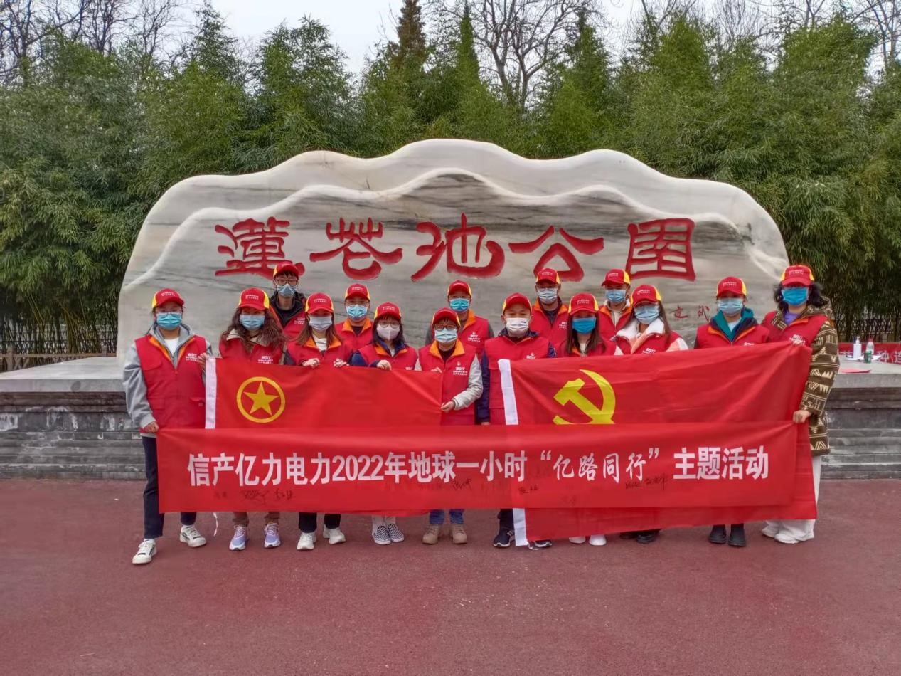 為積極宣傳地球一小時(shí)公益環(huán)保理念,落實(shí)“雙碳”目標(biāo),促進(jìn)節(jié)能環(huán)保,積極支持全球應(yīng)對(duì)氣候變暖行動(dòng),不斷深化國家電網(wǎng)思極先鋒“億心e意”共產(chǎn)黨員服務(wù)隊(duì)志愿服務(wù)能力,3月25日下午,信產(chǎn)億力電力黨支部在蓮花池公園組織開展2022年地球一小時(shí)“億路同行”主題系列活動(dòng)啟動(dòng)式暨蓮花池公園清潔志愿服務(wù)。信產(chǎn)億力電力黨員干部、黨員發(fā)展對(duì)象、入黨積極分子、團(tuán)員和統(tǒng)一戰(zhàn)線成員等16人共同參與。
