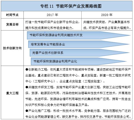 《貴州省“十三五”新興產(chǎn)業(yè)發(fā)展規(guī)劃》提出,著力突破鋼鐵冶金、有色金屬冶金、磷化工、煤化工、火電等原材料產(chǎn)業(yè)能耗高、污染大,以及固廢資源綜合利用附加值低等技術(shù)難題,開發(fā)節(jié)能環(huán)保產(chǎn)業(yè)鏈中的關(guān)鍵共性技術(shù),形成一批擁有自主核心技術(shù)的節(jié)能環(huán)保骨干企業(yè)和一批比較優(yōu)勢明顯、產(chǎn)業(yè)配套完善、有序集聚發(fā)展的先進(jìn)節(jié)能環(huán)保產(chǎn)業(yè)基地;在資源綜合利用方面,大力發(fā)展源頭減量、資源化、零排放和產(chǎn)業(yè)鏈接等新技術(shù),推進(jìn)產(chǎn)業(yè)化,提高資源產(chǎn)出率。著力發(fā)展再制造產(chǎn)業(yè),實(shí)施高端再制造、智能再制造、在役再制造,推進(jìn)再生產(chǎn)產(chǎn)品認(rèn)定,促進(jìn)再制造業(yè)持續(xù)健康發(fā)展,到2020年,節(jié)能環(huán)保產(chǎn)業(yè)總產(chǎn)值達(dá)到140億元。重點(diǎn)發(fā)展先進(jìn)環(huán)保產(chǎn)業(yè)。