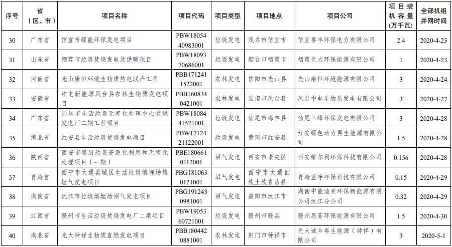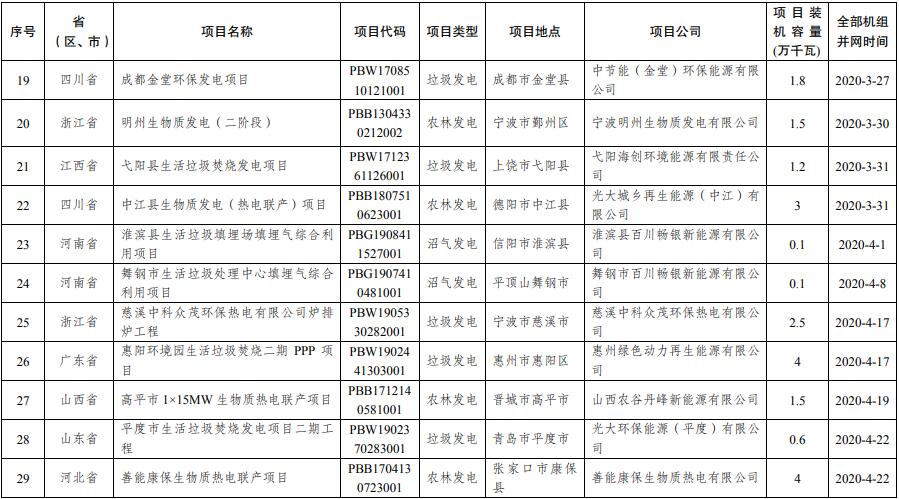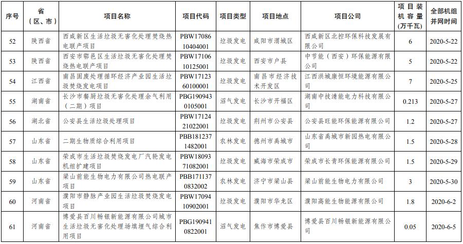 關于公布2020年生物質發(fā)電中央補貼項目申報結果的通知