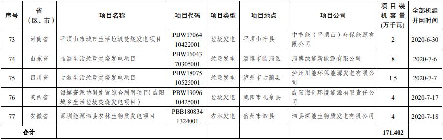 一、遵循公平、公正原則,經(jīng)委托國家可再生能源信息管理中心對各省(區(qū)、市)通過審核、公示無異議的項目進行復核、匯總排序,擬將河北、山西等20個省(區(qū)、市)的77個項目納入2020年生物質發(fā)電中央補貼規(guī)模,總裝機容量171.4萬千瓦,納入補貼范圍的項目所需補貼總額已達到2020年中央新增補貼資金額度15億元。其中,農林生物質發(fā)電項目18個、裝機容量53萬千瓦,垃圾焚燒發(fā)電項目46個、裝機容量116.3萬千瓦,沼氣發(fā)電項目13個,裝機2.1萬千瓦,具體結果見附件。