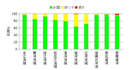 西北諸河、浙閩片河流、長江流域、西南諸河和珠江流域水質(zhì)為優(yōu),黃河、松花江和淮河流域水質(zhì)良好,遼河和海河流域為輕度污染。