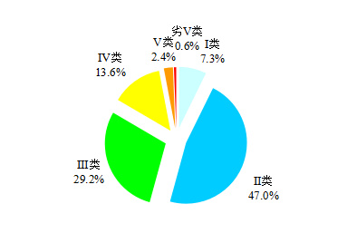 1940個國家地表水考核斷面中,水質(zhì)優(yōu)良(Ⅰ~Ⅲ類)斷面比例為83.4%,同比上升8.5個百分點(diǎn);劣Ⅴ類為0.6%,同比下降2.8個百分點(diǎn)。主要污染指標(biāo)為化學(xué)需氧量、總磷和高錳酸鹽指數(shù)。