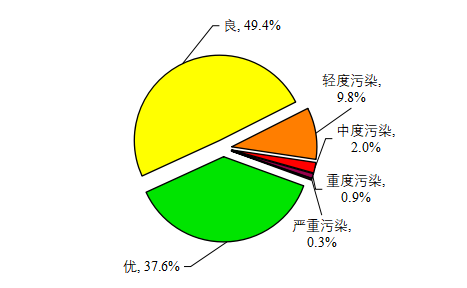 汾渭平原11個城市平均優(yōu)良天數(shù)比例為70.6%,同比上升8.9個百分點(diǎn);PM2.5年均濃度為48微克/立方米,同比下降12.7%。