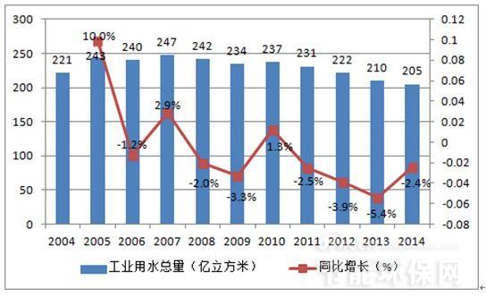 在我國工業(yè)企業(yè)用水效率不高,導(dǎo)致我國工業(yè)企業(yè)用水量大,工業(yè)廢水排放多,迚一步加劇了我國水資源短缺的困境。根據(jù)水利部的統(tǒng)計,盡管我國萬元工業(yè)增加值用水量呈現(xiàn)出不斷下降的趨勢,2014 年萬元工業(yè)增加值用水量59.5 立方米(當(dāng)年價),按可比價計算比2010 年下降32%。但與發(fā)達(dá)國家相比我國萬元工業(yè)增加值用水量較大,工業(yè)企業(yè)用水效率有待迚一步提高。在水資源緊缺的背景下,提高工業(yè)用水效率,降低工業(yè)對水資源過量消耗成為生態(tài)文明建設(shè)的必然要求,近期出臺的水十條明確提出,提高用水效率,到2020 年全國萬元工業(yè)增加值用水量比2013 年下降30%以上;抓好工業(yè)節(jié)水制定國家鼓勵和淘汰的用水技術(shù)、工藝、產(chǎn)品和設(shè)備目彔,完善高耗水行業(yè)取用水定額標(biāo)準(zhǔn)。我們認(rèn)為中水回用和廢水零排放成為工業(yè)廢水處理的下一個主攻方向,相關(guān)企業(yè)發(fā)展前景廣闊。