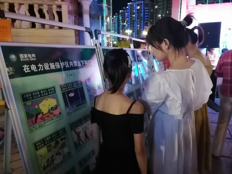 為進(jìn)一步營造社會(huì)公眾共同關(guān)注安全用電、依法用電的氛圍,該公司結(jié)合國安夜市當(dāng)晚文藝匯演人員多聚集的優(yōu)勢, 適時(shí)舉辦安全生產(chǎn)月“安全宣傳咨詢?nèi)?rdquo;活動(dòng),在夜市舞臺(tái)區(qū)“擺攤設(shè)點(diǎn)” ,為群眾帶來“面對面、零距離”的安全用電宣傳,全面掀起“安全生產(chǎn)月”安全用電宣傳熱潮。活動(dòng)現(xiàn)場,該公司開設(shè)了家庭用電咨詢、安全用電咨詢等多個(gè)服務(wù)性咨詢臺(tái),對群眾用電問題一一詳細(xì)做答;工作人員熱情地向來往行人發(fā)放安全用電宣傳畫冊、電力設(shè)施保護(hù)案例啟示等宣傳資料,主動(dòng)向群眾講解安全用電、觸電急救等知識(shí);陳列了電力設(shè)施保護(hù)宣傳等展板,并結(jié)合展板上的漫畫圖片向群眾宣傳電力設(shè)施保護(hù)知識(shí),倡導(dǎo)大家積極參與電力設(shè)施保護(hù)工作,共同維護(hù)電網(wǎng)安全;同時(shí)結(jié)合迎峰度夏工作,宣傳避峰用電、節(jié)約用電,引導(dǎo)大家樹立良好的用電習(xí)慣。