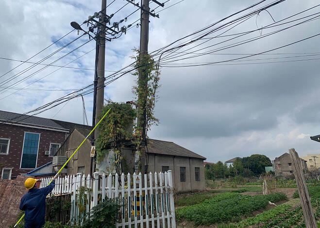 檢查過程中,工作人員發(fā)現(xiàn)不少居民住戶在進(jìn)戶線路下方、電桿拉線旁邊種植農(nóng)作物。為確保用電安全,工作人員一邊向種植戶講解爬藤植物對(duì)供電設(shè)備和人身安全的危害性,一邊根據(jù)爬藤物的不同情況,動(dòng)員居民自覺修剪、挖除、噴藥滅殺等方式,集中清理配電設(shè)備附近種植的植物和作物,從而確保高低壓線路及配網(wǎng)設(shè)備安全。