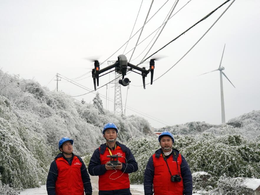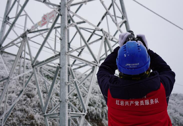 中國(guó)電力網(wǎng)訊 “110千伏四黎線今日最大覆冰厚度7.9毫米,目前風(fēng)速3.5米每秒,溫度零下4度……”“小心一點(diǎn),要走兩邊有草叢的地方,中間的道路結(jié)冰了,容易滑倒。”1月9日,國(guó)網(wǎng)重慶武隆供電公司輸電運(yùn)維檢修班成員吳鼎、趙樓等人來到武隆區(qū)和順鎮(zhèn)四眼坪鄉(xiāng)對(duì)覆冰線路開展特殊巡視。在白雪皚皚的四眼坪,國(guó)家電網(wǎng)紅巖共產(chǎn)黨員服務(wù)隊(duì)隊(duì)服的顏色成了冰雪世界里最靚麗的一抹紅,他們手拿著無人機(jī)、砍刀、繩索、望遠(yuǎn)鏡、風(fēng)速儀等設(shè)備再一次踏入他們熟悉的“冰雪戰(zhàn)場(chǎng)”。