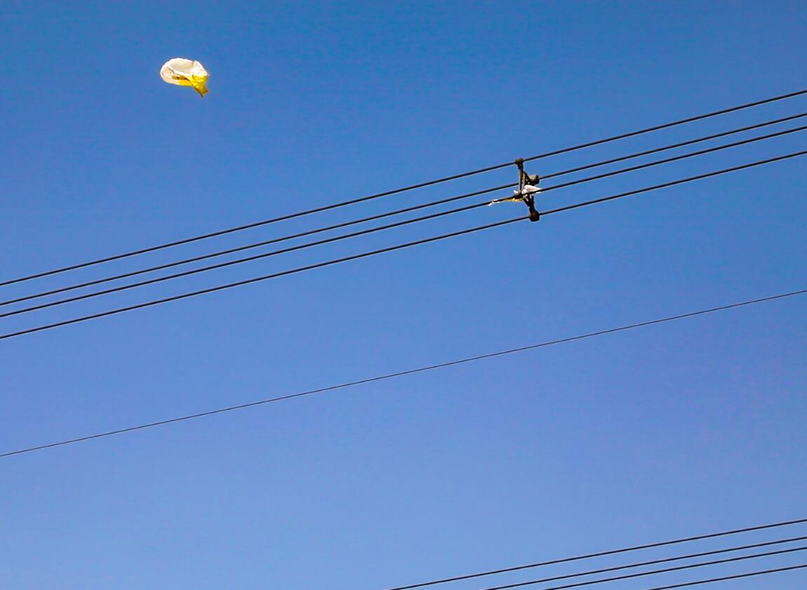 滑縣供電公司運(yùn)維人員在巡線路時(shí),發(fā)現(xiàn)有異物兜掛在500千伏導(dǎo)線上,如不及時(shí)清理,線路隨時(shí)有相間短路跳閘的危險(xiǎn),將造成大面積停電事故。對(duì)此,滑縣供電公司立即對(duì)現(xiàn)場(chǎng)作業(yè)風(fēng)險(xiǎn)進(jìn)行了評(píng)估,并決定利用電網(wǎng)異物激光清除儀俗稱“激光炮”處理。在激光炮完成好角度調(diào)試后,操作人員在控制屏上操作“激光炮”精確瞄準(zhǔn)了線路異物,一陣灼燒之后,異物在線纜上完成了熔斷與落地。