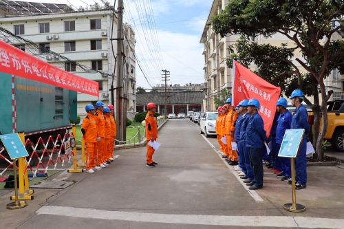 本次演練背景模擬會理市委紫云堂內(nèi)召開某重要會議,國網(wǎng)會理市供電公司已部署為其開展現(xiàn)場保供電,且保供電車輛均已接入。會理市委屬于重要電力用戶,有專用電力變壓器和完善的電源系統(tǒng)。為體現(xiàn)演練真實性,本次演練模擬進線電源因施工外破導致真實失電,該公司迅速啟動應急響應,市委工作人員配合執(zhí)行保電應急預案腳本。