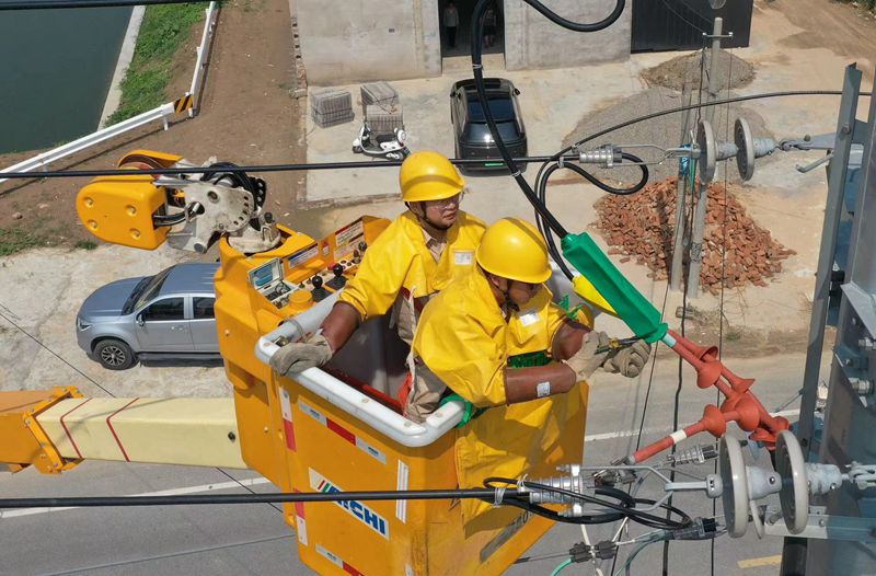 7月3日,國網(wǎng)江蘇電力睢寧縣供電公司組織帶電作業(yè)人員,對(duì)沙集鎮(zhèn)10千伏沙廟069線1號(hào)桿開展帶電消缺,確保當(dāng)?shù)匮雌诎踩煽抗╇姟?/p>