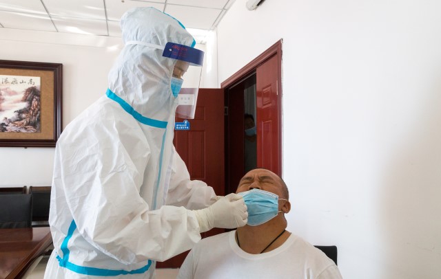 此次核酸檢測方式為鼻咽拭子。該院體檢中心主任孫逾介紹,人體咽部分區(qū)包括鼻咽、口咽、喉咽,三者的黏膜是連續(xù)的,均屬于上呼吸道區(qū)域。采用鼻咽拭子取樣時(shí),棉簽可以在咽部停留較長的時(shí)間,操作者不需直視患者口腔,暴露風(fēng)險(xiǎn)低。接受檢測人員下拉口罩僅露出鼻孔,基本不出現(xiàn)咽反射,能夠獲得足量的采集標(biāo)本,有助于提高核酸檢測的準(zhǔn)確率。