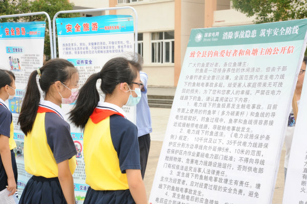 國(guó)網(wǎng)撫州廣昌縣供電公司積極響應(yīng)縣委宣傳部號(hào)召,認(rèn)真聽講并設(shè)立安全展板:“居家用電安全常識(shí)”、“預(yù)防常見(jiàn)用電事故”、“如何急救觸電者”......此次“暑期第一課”活動(dòng),提醒了同學(xué)們?cè)诩倨诶镆惨⒁庖咔榉揽?,要遠(yuǎn)離危險(xiǎn)場(chǎng)所、避免危險(xiǎn)行為,進(jìn)一步增強(qiáng)了同學(xué)們的安全觀念和自我保護(hù)意識(shí),對(duì)少年兒童的健康成長(zhǎng)起到了良好的安全護(hù)航作用,讓同學(xué)們度過(guò)一個(gè)健康、安全的暑假。