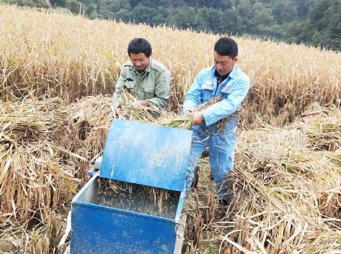 當天,陳啟權步行到田間,就開始在田里忙活。割稻、打稻、收裝、整理秸稈、搬運……有條不紊,小小“一畝三分地”,卻獲得了1000余斤的大豐收,離不開王南友的辛勤耕耘,也離不開陳啟權的用心幫扶。糧食收齊后,陳啟權還聯(lián)系復興鎮(zhèn)的一家烘烤房,幫忙烘谷,解決后顧之憂。